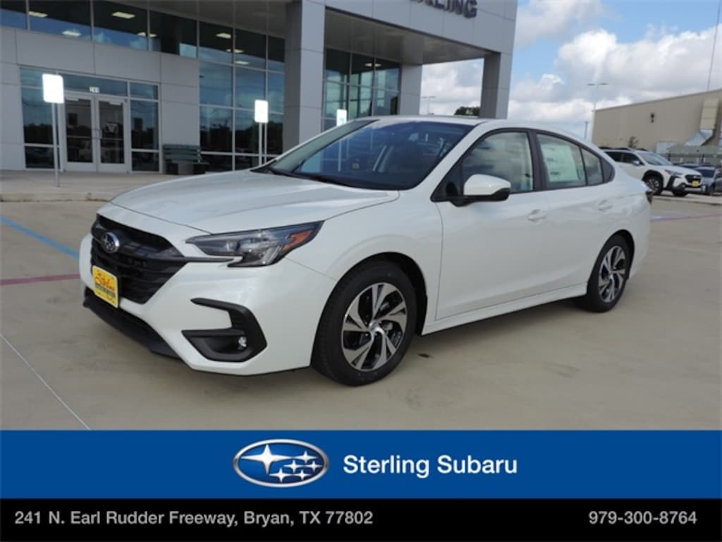 Let the team at Sterling Subaru introduce you to an entirely new kind of car-buying experience. This 2025 Subaru Legacy Premium in Crystal White Pearl comes with the following features: 2.5L 4-Cylinder DOHC 16V Lineartronic CVT AWD 4-Wheel Disc Brakes, 6 Speakers, ABS brakes, Air Conditioning, Alloy wheels, AM/FM radio: SiriusXM with 360L, Anti-whiplash front head restraints, Apple CarPlay & Android Auto, Auto High-beam Headlights, Automatic temperature control, Brake assist, Bumpers: body-color, Cloth Upholstery, Driver door bin, Driver vanity mirror, Dual front impact airbags, Dual front side impact airbags, Electronic Stability Control, Emergency communication system: MySubaru Safety Plus (3-year free trial included), Exterior Parking Camera Rear, Four wheel independent suspension, Front anti-roll bar, Front Bucket Seats, Front Center Armrest w/Storage, Front dual zone A/C, Front reading lights, Fully automatic headlights, Heated door mirrors, Heated Front Bucket Seats, Heated front seats, Illuminated entry, Knee airbag, Leather steering wheel, Low tire pressure warning, Occupant sensing airbag, Outside temperature display, Overhead airbag, Overhead console, Panic alarm, Passenger door bin, Passenger vanity mirror, Power door mirrors, Power driver seat, Power steering, Power windows, Radio: Subaru 11.6" Multimedia Plus System, Rear anti-roll bar, Rear seat center armrest, Rear window defroster, Remote keyless entry, Security system, Speed control, Speed-sensing steering, Split folding rear seat, Steering wheel mounted audio controls, Tachometer, Telescoping steering wheel, Tilt steering wheel, Traction control, Trip computer, Turn signal indicator mirrors, Variably intermittent wipers, and Wheels: 17" x 7.5J Blk Mach Finish Aluminum-Alloy.